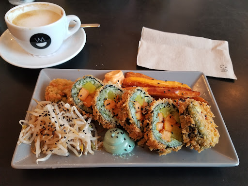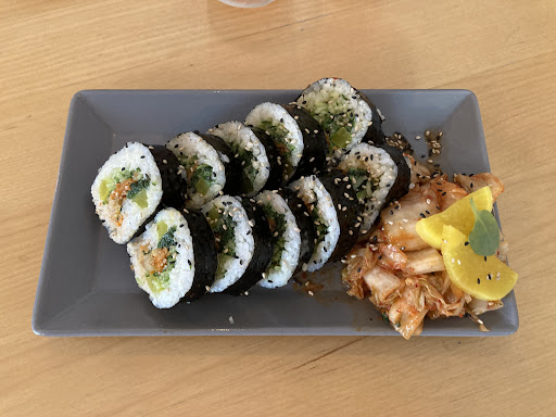 Read moreEines der besten (veganen) Restaurants in Bochum! Das Essen ist 10/10 (frisch zubereitet, vielfältig im Geschmack, gesund bzw. ausgewogen, aber auch sättigend etc.) und die Auswahl ist genau in der Grenze, wo jede Person etwas findet, es aber nicht so viel ist, dass die Entscheidung einem schwer fällt. Nach meinem Besuch in Korea vermisse ich die koreanische Küche sehr oft und hier bin auf jeden Fall gut aufgehoben, wenn ich mal cravings bekomme. Die Personen im Service sind aufmerksam, super lieb, locker und vor allem auch schnell. Außerdem: Pluspunkte für die Musik 🎵 Zwei Kritikpunkte muss ich allerdings loswerden: Der Preis ist für mich schon an einer Schmerzgrenze und deshalb gehe ich auch nicht zu oft hin. Pro Kimbap-Stück sind es mehr als einen Euro, und 7,50€ für ein kleines Schälchen Tteokbokki sind meiner Meinung nach auch echt ein bisschen extrem (ich spiele diese Karte auch ungerne, weil Essen gehen auch eine Erfahrung ist, aber eine ganze Tüte Tteokbokki findet man im Asiamarkt auch für weniger, als das komplette Schälchen). Klar, man kann jetzt mit Frische und Qualität argumentieren, aber das rechtfertigt die Preise für mich persönlich trotzdem nicht. Zuletzt ein kleiner Minuspunkt: Die Einrichtung vor allem vorne an der Theke ist super süß, aber im Essbereich sind die Tische ein wenig unpassend und lassen den Raum kalt wirken. Die Stühle sind auch relativ unbequem, aber das ist meckern auf hohem Niveau.