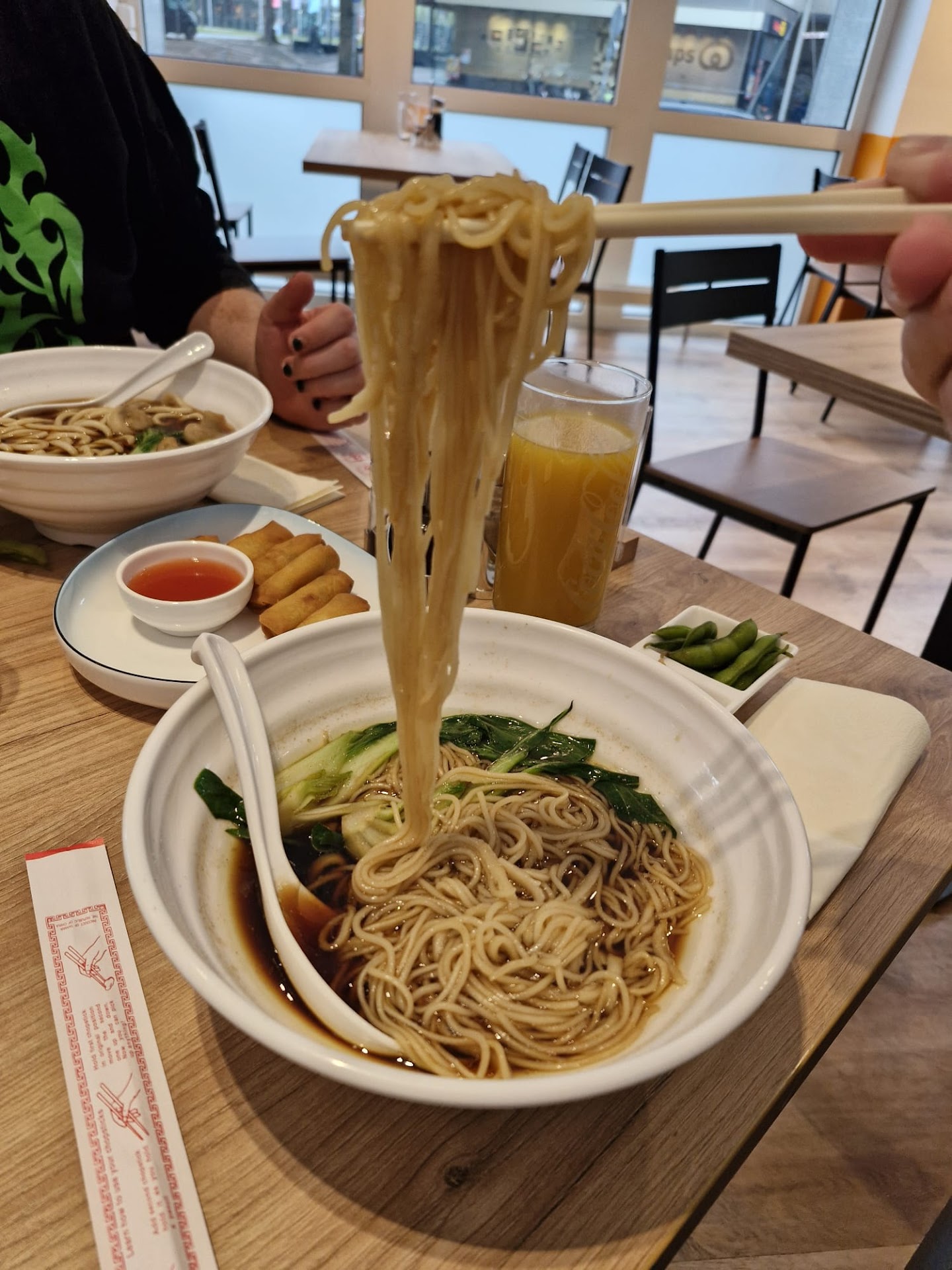 Read moreService sehr nett, aber kann nicht so gut deutsch. Essen leider subpar, die Zhajiangmen-Soße war gut gewürzt aber viel zu wenig für die Nudeln. Die Nudeln selbst komplett überkocht und wässrig. Außerdem hatten wir mit Schweinefleisch bestellt und es waren nur ein paar Krümel Schweinefleisch drin, stattdessen kleingehackte Champignons, das ist für mich ein Scam, so günstig ist...