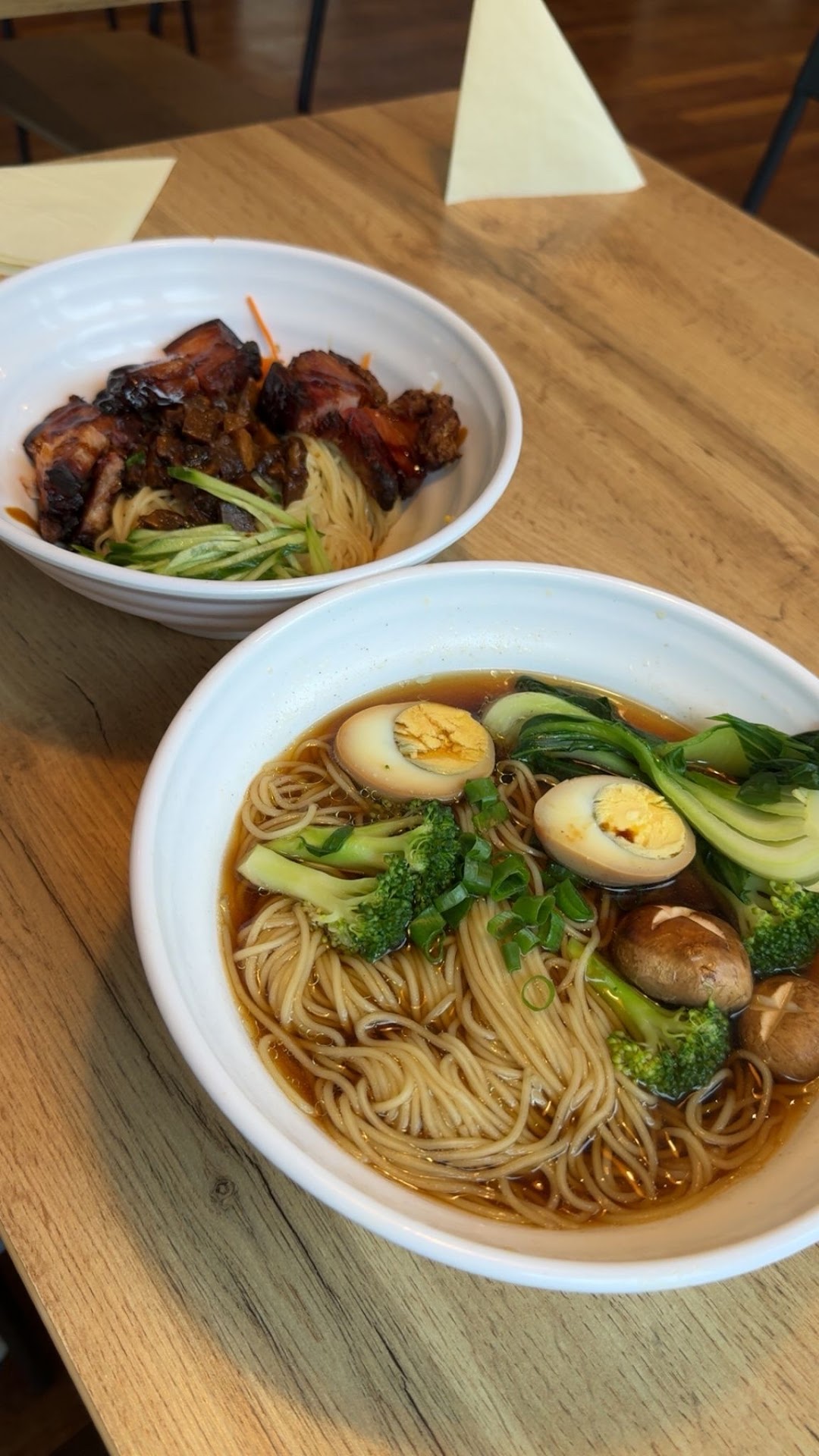 Die Suppen gerade noch bitte als Vegan bestellen, da die Grundbrühe vegan ist aber bei der vegetarischen Variante ein Ei hinzugefügt wird.