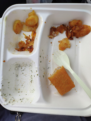 Read moreBin leider sehr enttäuscht... Für gewöhnlich ist die Qualität ganz Ok, jedoch scheit bei dieser Filiale diesmal etwas ziemlich falsch gelaufen zu sein. Wir haben heute etwas zum Mitnehmen bestellt (Alaska Seelachs im Menü-Angebot) und mussten später feststellen, dass kein Besteck beigefügt war (hatte glücklicherweise noch im Auto eine Plastikgabel liegen). Des Weiteren ist die Beilage (Bratkartoffeln) teilweise nicht mehr genießbar gewesen.... (Siehe Foto). Eine Zitronenscheibe wurde auch nicht beigelegt . Die Cola wurde in einem Kaffee-pappbecher serviert (weiß jetzt nicht genau, ob im Angebot 0,33 oder 0,25 ltr. Enthalten waren). Servietten fehlten auch. Das einizge was passte,...