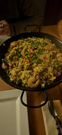 Samstag abends, 20:30 Uhr. Eine größere Personengruppe verlässt gerade das Lokal in einem ruhigen Wohngebiet und wir treten ein in einen Raum im Kneipendesign. Eine nette Kellnerin fragt ob wir reserviert haben und wir verneinen. Nach einer kurzen Prüfung im größeren Nebenraum kann sie uns einen der zahlreichen leeren Tische anbieten. Wir nehmen an einem 2er-Tisch platz, der recht klebrig war. Mit der Bestellung der Getränke erhalten wir die Karte und ein Blatt zum Ankreuzen. Wir outen uns als unkundig in Bezug auf Tapas und erhalten eine kurze und informative Erläuterung zu Hauptgerichten, Tapas, empfohlener Menge und Bestelltechnik auf dem Zettel. In der Karte waren die spanischen Bezeichnungen gut lesbar, bei der sehr klein geschriebenen Übersetzung und Erläuterung und dem schwachen Licht musste die Lupenfunktion im Handy helfen. Klappt alles ganz gut. Das Essen wurde nach angenehm kurzer Zeit gebracht und sah sehr lecker aus. Das Gericht Tomate mit Spinat aus dem Ofen war eine große Tomate mit Füllung aus Spinat (TK in der Spinatsaison?) der Tomatendeckel war auch angeröstet. Der große Tomatenkörper war jedoch kalt und nicht mit ofentypischen Spuren wie Wärme oder Oberflächenbeschaffenheit versehen. Die anderen Gerichte waren lecker und entsprachen den Erwsrtungen, auch wenn die gereichte Brotmenge und die Gesamtmenge von zwei Hauptgerichten, einem großen Tapas-Teller und einem weiteren Ragout nicht dazu reichte, uns zu sättigen. Nach dem Servieren des Essens und dem Abräumen des Geschirrs kam nämlich NIEMAND mehr, um sich nach uns zu erkundigen: weitere Getränke gewünscht? mehr Tapas und mehr Essen nötig? Alles gut? Fazit: leider nicht satt geworden, Essen hat nicht die Erwartung der Beschreibung erfüllt, im...