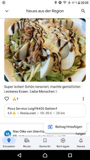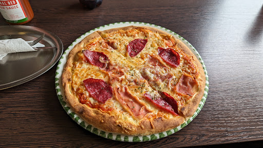 Read moreKleine Pizzeria mit Außenbereich gelegen auf einem ruhigen Platz. Das Mobiliar draußen hat seine besten Zeiten schon hinter sich, ansonsten ist es draußen aber einigermaßen idyllisch. Innen ist es hingegen sehr gedrungen. Die Pizzen sind recht durchschnittliche, wie man sie in Bochum häufig bekommt. Auch die Pizzabrötchen und Nudelgerichte sind soweit ganz in Ordnung. Eine Frechheit ist allerdings die Sparsamkeit mit der die Bolognesesoße verwendet wird. Auf der Pizza bekommt man fünf Salami-große Kleckse Soße auf einem ansonsten nur mit Käse belegtem Teigfladen. Das ist wirklich verdammt trocken, wenn nicht einmal Tomatensoße auf der Pizza ist. Aus meinem "Fehler" gelernt bestellte ich beim nächsten mal statt Pizza lieber eine Lasagne. Leider bot sich auch hier ein ähnliches Bild. Wie auf dem angehängten Foto zu sehen, ist zwischen den Nudelplatten rein gar nichts - weder Bolognese noch Bechamel. Die Bolognesesoße wurde augenscheinlich nur einmal um den Stapel aus Nudelplatten herum gegossen und dann mit Käse überbacken. Von Bolognese-Gerichten rate ich daher dringend ab, der Rest hat typische Qualität eines...
