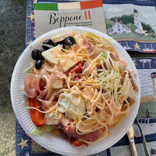 Ich bin total enttÀuscht. Die Pizzeria Beppone war immer Top aber die lassen immer mehr nach. Wir haben vorhin dort bestellt, der Lieferant war genervt und nicht wirklich freundlich, deswegen gab es auch kein Trinkgeld. Das Essen hat auch nicht wirklich gut geschmeckt hab schon deutlich bessere Pizza gegessen. Jemand von uns hatte Tagliatelle mit Gamberetti. Die Garnelen waren roh und mit Schale was eigentlich nicht sein darf. Dann haben wir da angerufen und uns beschwert. Als Antwort kam nur jo dann weià ich bescheid. Kein Entschuldigung keine EntschÀdigung einfach nichts. EnttÀuschung Pur ! DemnÀchst dann...