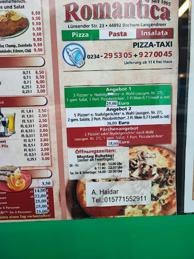 Zur Menge sei soviel gesagt: bestellt wurde eine 'große' Pizza! Jetzt ist dieser Begriff zwar nicht festgelegt, aber in den meisten anderen Pizzerien kann man bei einer großen Pizza doch zumindest mit Ø28 cm rechnen (+/-). Wenn jetzt aber die als groß ausgezeichnete Pizza unter Ø24cm liegt, dann ist das mal nen Mengenunterschied von schlappen 26% zu den Mitbewerbern, bei einem Preis von 6€ für ne Standard-Pizza .. ... Liebes Romantica Team .. ich würde euch von mir aus auch 7€ für eine vernünftige Pizza bezahlen, aber dann muss halt auch die Größe passen!