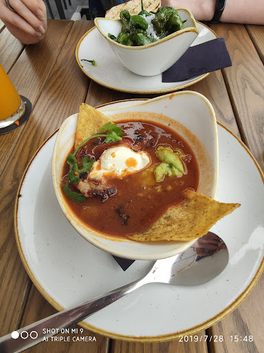 Vorspeise Chili Bowl (5,90€) Sehr leckere Suppe mit Speckstreifen. Außergewöhnlicher Geschmack. Pimientos (6,90€) Gut zubereitete Paprika im Zusammenspiel mit groben Salz eine sehr gute Mahlzeit auch für zwischendurch.