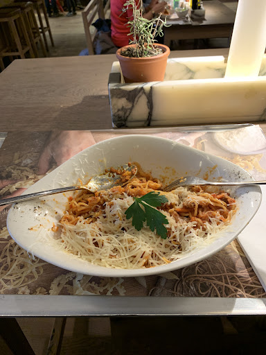 AtmosphĂ€re Auf Grund der Baustelle vor dem Restaurant lohnt es sich aktuell nicht das Essen drauĂen zu verzehren. Damit geht einher, dass das Restaurant aktuell sehr unscheinbar wirkt. Heute konnte ich erst erkennen ob die Filiale geöffnet ist, als ich vor der TĂŒr stand und eine Mitarbeiterin am Empfang gesehen habe. Von auĂen und aus der Ferne betrachtet wirkte es so, als sei geschlossen. Im Innenraum hat sich ĂŒber die Jahre Optisch nicht viel geĂ€ndert. Hinter den Zubereitungsbereichen wirkt es leider nicht mehr so einladend, wie es frĂŒher war. Anstelle von frischen Zutaten, Nudeln etc fĂ€llt der Blick als erstes auf sehr vielen Dosen von Mutti. Das hat gleichzeitig einen Beigeschmack, den ich spĂ€ter noch erlĂ€utere.