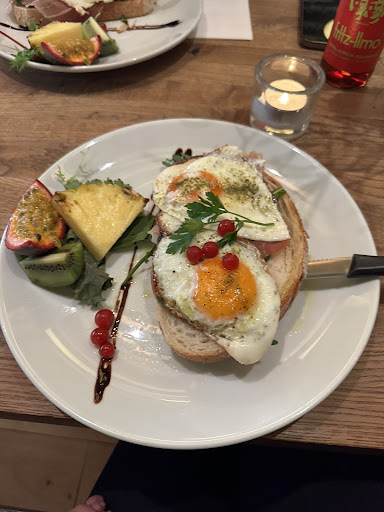 Read moreFrühstück zu zweit: Wir hatten nicht reserviert und anfangs leider keinen Platz bekommen. Der Besitzer versprach uns jedoch, den nächsten freien Tisch für uns freizuhalten. Nach einem Spaziergang und ca. 20 min später kamen wir zurück. Schlussendlich wurde unsere Geduld belohnt und wir waren sehr froh, dass wir gewartet haben. Ein sehr gemütliches Cafe mit super nettem Service, Getränke und Speisen von bester Qualität. Der Cappuccino und Espresso ein Genuss! Da kennt sich jemand mit seinem Handwerk bestens aus. Zum Frühstück hat sich meine Freundin für das Fitness-Frühstück entschieden und ich für das Sandwich mit garniertem Ziegenkäse und Wallnüssen. Beides sehr sehr lecker. Das Sandwich mit der hausgemachter Sandwich-Sauce war überragend! Unbedingt probieren! Völlig zurecht...