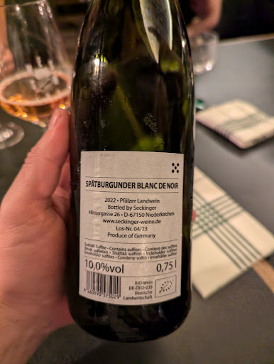 Das Restaurant besticht durch seine Weinauswahl. Die Weinkarte ist für Weinliebhaber geprägt von seiner Vielfältigkeit, zu sehr fairen Flaschenpreisen. Jana kennt sich mit den angebotenen Wein super aus. Ihre Weinexpertise ist eine Bereicherung für das Lokal. Vom einfach bis besonderen Flaschenwein ist nahezu alles erhältlich, tlw. sehr seltene Weine. Wir saßen mit einer Gruppe von neun Personen auf der Terrasse, an einem schönen lauen Sommerabend. Aufgrund der örtlichen Gegebenheiten (Wohngebiet) darf draußen keine Musik gespielt werden, ebenso ist die Terrasse um 0.00 Uhr nicht mehr zu nutzen, was schade ist, der Gastronom hierfür aber nichts kann. Die Speisekarte ist auf wenige Speisen beschränkt, was gut ist. Alle Vorspeisen, wie Rindertatar, die kalte Gurkensuppe oder ein Salat waren geschmacklich sehr lecker, ebenso die ansprechende Anrichte. Die Hauptspeisen waren dicht die Bank sehr lecker, geschmacklich toll und passen hervorragend in dieses Lokal. Ob die Haxe, ein Schweinekoteletts, Auf der Haut gebratener Lachs oder das Kaninchen im Speckmantel, alles sehr köstlich. Änderungswünsche am Gericht wurden problemlos umgesetzt. Die Terrasse könnte ein Tick einladender aussehen, daher ein Stern Abzug, dies ist aber Geschmacksache (andere aus der Gruppe fanden es sehr schön). Der Barbereich im Lokal ist sehr stylisch und schick. Dies kommt durch das Weinregal, in der diverse leere Schätze präsentiert werden. Jana ist eine wunderbare Gastgeberin, dies möchte ich gerne nochmals betonen. Ein wirklich sehr schöner Abend, eine klare Empfehlung, es ist eine klare Empfehlung dieser Gaststätte ein Besuch abzustatten, wenn man...