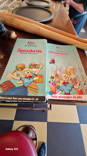 Negativ: Die langweiligsten Milkshakes ohne nennenswerten Geschmack, die wir je hatten. Kein Sirup, keine Deko, kein Eis drin (Kekse, Streusel?) - das konnte bisher jeder andere Diner besser. Der Laden ist etwas in die Jahre gekommen, insbesondere die Sitzgelegenheiten. Polster aufgerissen, auf manche wurde immerhin eine graue Fleecedecke gelegt. Schweineteuer von den meisten Getränken bis hin zu Standard-Burgern. Ich denke nicht, dass US Diner sowas im Land der Burger servieren würden. Wo ist da der Anspruch an die eigene Küche innerhalb der Burgerkette?