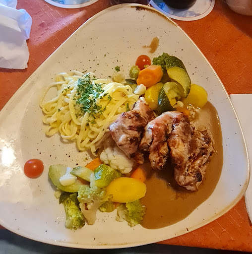 Read moreAls wir ans Lokal kamen, wurde der Herr, der alleine vor uns stand mehr oder weniger übergangen. Er wurde in ein Eck geschickt und wir als 6 Personen bekamen einen Tisch! Kundenfreundlich is anders. Irgendwann ist er glaub ich gegangen, ich habe ihn nicht mehr gesehen 🤨. Wir haben 25 Minuten auf die Karte gewartet, saßen da wie bestellt und nicht abgeholt. Als der Kellner kam, um das Essen aufzunehmen, hatten wir bisher weder Getränke noch Karte 🤣. Bestellung als Vegetarier schwierig. Auf Frage ob die Semmelknödel mit Pfifferlingen wirklich vegetarisch is hat er gelacht und gesagt : ist wahrscheinlich Rahmsoße mit Pilzen und die ist mit Fleisch gemacht.... Nudeln wollte ich nicht. Hätte dann halt nix gegessen. Er hat tatsächlich in der Küche gefragt und ja, es war dann doch vegetarisch. Haben quer durch die Karte bestellt. Nach 40 Minuten zusammen heiß serviert. Mein Essen war viiiiiiel Soße: paar Pilze und Gemüse in Sahnesoße und 2 Golfballgroße KARTOFFELKNÖDEL... In der Karte waren es eigentlich Semmelknödel... 😔. (Suppenteller voll Soße und die 2 Miniknödel für 13.90... Da stimmt irgendwas nicht an der Zusammenstellung... Wollte ja keine Pilzsuppe mit Topping...) Sohn gibt Schnitzel 3 Sterne... Bei den Leuten vom Nebentisch ging ne Frau leer aus. Wurde nachserviert wie alle fertig waren... Alles in allem viel zu teuer, mein Mann sagt, ich würde besser kochen, viel zu lange insgesamt. Fazit : haben schon schlechter, aber auch wesentlich besser gegessen, war geschmacklich nicht der Burner. Klo war...