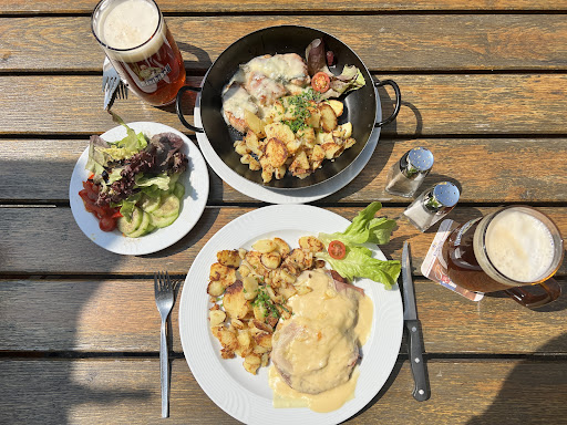 Wir hatten verschiedene Gerichte von der überschaubaren Speisekarte bestellt, alles sehr einfach Speisen, bei denen man eigentlich nichts falsch machen kann... möchte man meinen! Weder die Currywurst, noch das Gröstl, noch die "Röstzwiebel" auf den Käsespätzle haben eine Pfanne gesehen! Die Currywurst hat ausgesehen wie gekocht, nicht gebraten, das Gröstl war einfach nur blass und geschmacklos und die Käsespätzle haben den Namen nicht verdient... Fertigspätzle mit einer Prise Käse und rohen Zwiebeln darauf!? Alle Gerichte waren absolut ungewürzt und ohne Geschmack! In dem mickrigen und unangemachten Salat war dann zudem noch ein fettes Haar! Leute, das war GAR NICHTS! :-(