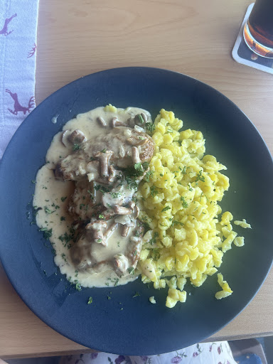 Read moreEnglish/Deutsch I got, Schweine-Medaillons in feiner Champignonsobe mit hausgemachten Spätzle und Salat. The Spätzle was good 😊 the sauce was a little bit salty so I needed to eat my salad with it in between. The meat was a bit hard, so I left it to my grandparent to eat. The salad was amazing and delicious. Service was wonderful as well as atmosphere. A bit pricey but is so good! ✨