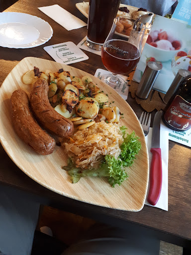 Geschmacklich war es knapp unter “okay” – ich konnte keinen Pfeffer oder sonstige Würze herausschmecken. Mein Partner hatte das Jägerei-Gulasch – das Fleisch war gut, aber die Soße eher mild im Geschmack. Ich habe zwei Sterne vergeben, weil der Ort wirklich schön ist und der Service absolut top war. Das Servicepersonal bekommt von mir fünf Sterne! Wirklich schade um das Essen. Das Foto zeigt mein Gericht halb gegessen – die Portion war groß, aber die Oberfläche war nie goldbraun überbacken, sah die ganze...