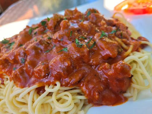 Gyros Metaxa überbacken wurde bestellt. Bekommen haben wir Gyros mit super vielen Zwiebeln und Champignons in Sahnesoße. Der Käse ist irgendwie ein Kunst Form Käse der ansatzweise heiß gemacht wurde und so hell war wie Kaugummi. Von überbacken ganz weit weg!!! Paprika ist auch dabei gewesen, zumindest muteten die super kleinen mm großen Paprikawürfel dies an. Ich schätze das es nicht mal einen kleinen Löffel an Menge gewesen ist. Dafür gab es wie gesagt zum Füllen die gefühlten 5 Zwiebeln und Champignons. Metaxa war da nie im Leben drin. Die Soße war flüssig wie Wasser. Die Pommes ohne Gewürze und soviele kleine Stücke die knochenhart waren. Einfach zu lange frittiert. Servietten gibt’s auch nicht mehr. Sehr schade das dies wirklich so nachgelassen hat. Wir haben sonst gerne das Essen genossen. Aber nicht mehr für die Preise und dann so eine schlechtes Abliefern. Noch ein Hinweis, warum auch immer aber !!!!Das Essen hat uns beide nach wenigen Minuten gekillt, weil wir beide ständig zur Toilette mussten. Fotos durfte ich lauf Google nicht einstellen weil sie gegen Richtlinien verstoßen würden. Warum auch...