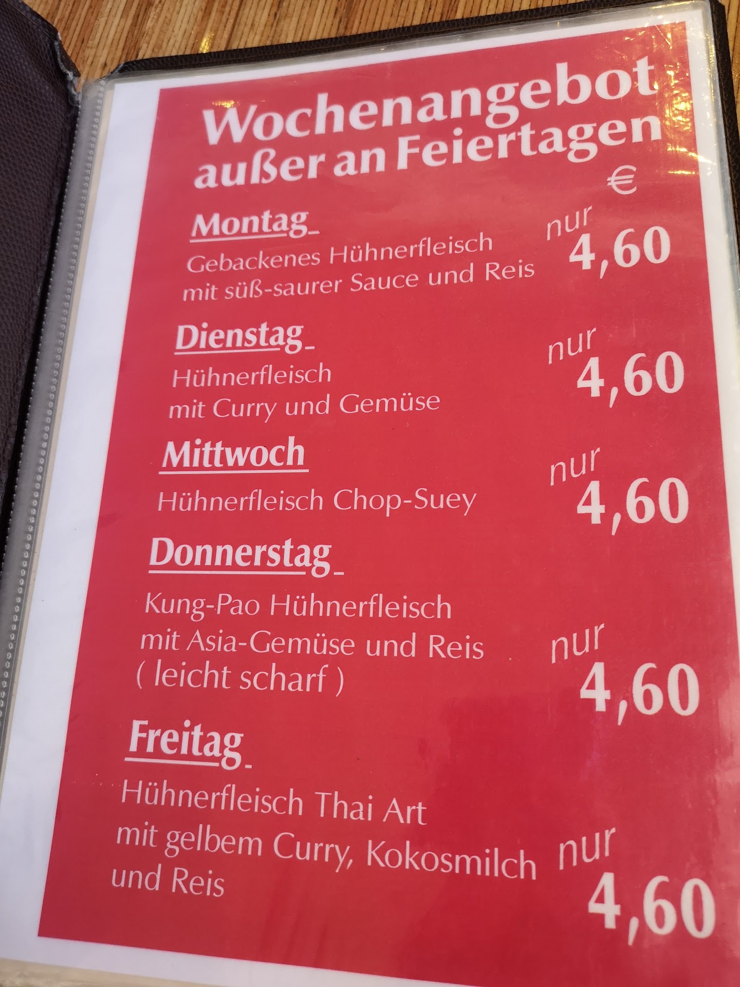 Read moreSurprisingly affordable, decent portions. The menu of the day is a steal. Green curry with duck was pretty good, the curry soup was served separately, as it is supposed to be. The sweetness of a real green curry was missing, but if you expect authenticity, you should not order Thai dishes at a Viet-run place. The duck was good as well, crispy and not too fat. Kung bao chicken was ok, but it has nothing to do with the Chinese original and tastes like anywhere else in Germany. A little downer at the end, the price I was supposed to pay seemed way off and when I complaint I got to pay the real price. How difficult is it to add the price...