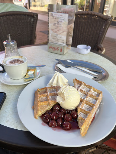 Vorab das Positive. Die Bedienung ist wirklich sehr lieb, das kann man nicht anders sagen! Auch die Möglichkeit, bei nicht so warmen Temperaturen im Wintergarten sitzen zu können, ist sehr schön. Es gibt hier einen wirklich sehr guten Kaffee.