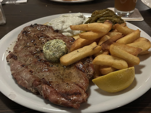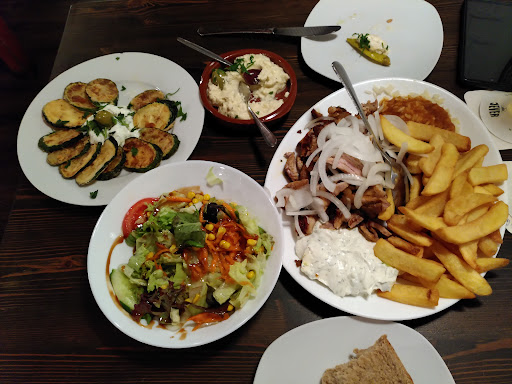Read moreZum Essen: Meine Vorspeise, die gegrillten Auberginen mit Tzatziki, waren sehr lecker. Als Hauptspeise hatte ich den Piatela-Teller. Die Pommes und das Tzatziki waren in Ordnung. Der Spieß war leider zu durch und zäh. Auch das Gyros war zu stark angebraten. Die Frikadelle war schon schwarz gebraten und sehr pfeffrig. Der Beilagensalat war zu salzig. Dem Hauptgang gebe ich maximal 2/5 Punkten. Die Bewertung des Essens wird jedoch durch die gute Vorspeise aufgewertet. Die Portion war sehr groß. Man mag das positiv sehen, mir verdirbt es nur immer etwas den Appetit wenn man einen riesigen Berg Essen vor sich hat.
