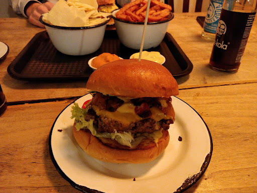 DE: Ich bin öfters mit meinem besten Kumpel Burger essen. Einmal im Monat testen wir Läden rund um Bonn und Köln. Hier waren wir schon 3 Mal! Ich mag die Süßkartoffelpommes und die Trüffel Parmesan Pommes - sehr sehr gute Wahl, aber ich empfehle Euch: Teilt diese mit euerm Buddy oder Partner, es ist echt eine große Portion und der Geschmack kann auf Dauer zu einnehmend werden! Die Burger sind auch echt gut, ich mag das Brioche Brot, schön fluffig, geschmackvoll und gut geröstet! Das Fleisch ist auch echt gut und der Gar-Punkt wurde getroffen, die Jungs in der Küche wissen was sie tun! Das Ambiente ist in Ordnung, daher auch der Punkt Abzug - man kann in Ruhe dort sitzen, essen und auch nach dem Essen noch etwas Reden, aber es ist auch kein besonders schönes oder spezielles Ambiente. Zusammenfassend: Gutes Burger-Lokal! Die Preise sind okey, nicht gerade günstig, aber auch...