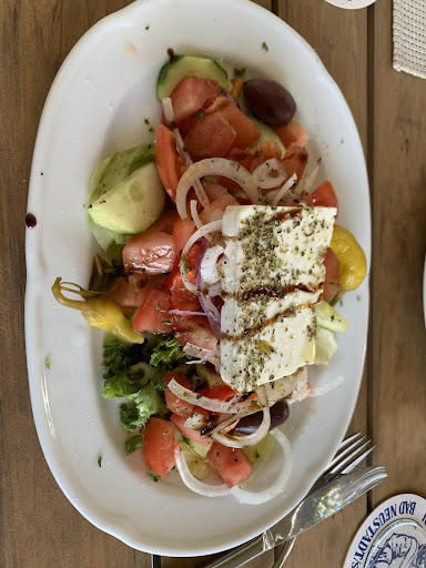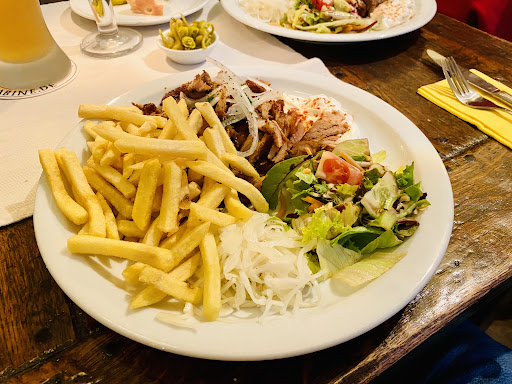 Ein kleines, verstecktes griechisches Restaurant. Wir hatten einen Tisch reserviert und bekamen von der freundlichen, aber sehr gestresst wirkenden Chefin schnell die kleine Karte. Wenn alles frisch zubereitet wird, habe ich nichts gegen eine kleine Karte, im Gegenteil. Alles klassische griechische Gerichte. Obwohl das Lokal nur mäßig besucht war, dauerte es 45 Minuten, bis wir unser Essen bekamen. Das Lokal bietet auch essen zum mitnehmen an, ständig klingelte das Telefon mit neuen Bestellungen und ich hatte den Eindruck, dass diese Bestellungen vorgezogen wurden.Es wäre ein leichtes gewesen, vorab etwas Brot und Tsatziki zu servieren. Das bekamen wir zum Essen, obwohl wir es nicht bestellt hatten. Ordentlich angerichtet, gute Portionen. Leider waren sowohl Gyros als auch Souvlaki völlig trocken. Geschmacklich lecker, aber völlig trocken. Der Spieß war so trocken, dass ich ihn nicht essen wollte und zum Schluss reklamierte. Als Entschädigung wurde mir ein Espresso angeboten, meine Begleitung bekam keinen angeboten, sehr unhöflich. Im Umkreis von 500 m gibt es bessere griechische Lokale.