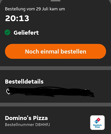 Read moreHallo, hier kurz unsere Rezension zu Domino's Pizza Bonn - Popelsdorf: Wir bestellen des öfteren Essen ins Krankenhaus (auf Station). Es gibt diverse Gründe, warum das Essen auf Station geliefert werden soll. Der Naheliegendste ist, dass man die Station auf Grund der gegebenen Personellen Situation nicht verlassen kann/ darf! Dieses wird bei der Bestellung dann auch angegeben. Wenn "der Fahrer" sich dann weigert die Bestellung auf Station zu bringen & das Essen einfach an der Rezeption abstellt (uns somit kalt ist) finden wir dieses ein Unding! Bestellt haben wir das Essen bis dato immer über PayPal, vielleicht sollte man dieses lassen und in Bar zahlen damit die Lieferung den Weg auf Station findet (immerhin wird der Betrag unmittelbar nach der Bestellung abgebucht) oder direkt bei einem anderen Lieferanten bestellen?! Auch das anschließende Telefonat, nach dem Verbleib unserer Lieferung fand keinen klärenden Abschluss (es ist ja nicht so, dass dieses zum ersten Mal passiert ist! Andere Fahrer finden auch den Weg.) Über die Qualität der Speisen kann man sich nicht beklagen - gut! Wir benötigen allerdings einen zuverlässigen Lieferservice -...