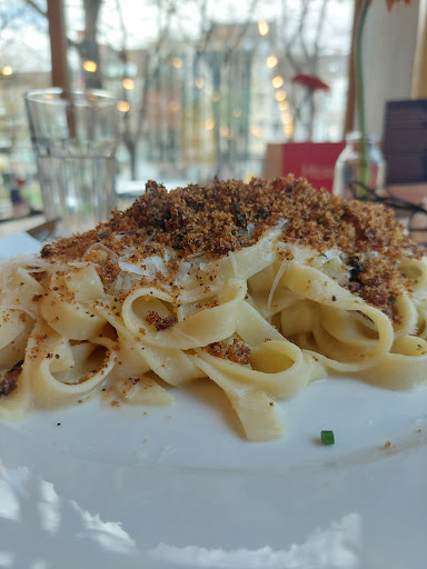 Der Kirchenpavillion ist für jede*n da, generationenübergreifend und gemeinwohlorientiert. Eins meiner Lieblingslokale für die Mittagspause und eine (neue) geschmackliche Erfahrung, die von carnivoren bis zu veganen Speisen reicht. Auf dem angehängten Foto ist das Gute von gestern, für 5.90, zusehen. Am Dienstag den 22. November standen Tagliatelle mit Blumenkohl-Crème-Sauce, Parmesan und Tomaten-Semmelbrösel...
