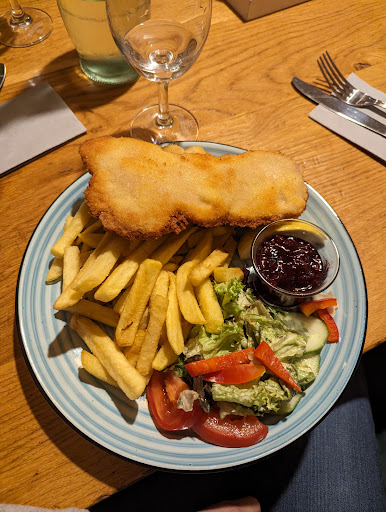 We had dinner here and it was really a surprise! My schnitzel was amazing, I tried it for the first time with the blueberry jam. I was sceptical at the beginning thinking that the two together wouldn't match, but after I tried it was a revelation :) In Italy we used to eat it eventually with lemon and I was afraid that the blueberry jam would be sweet, but I was wrong the jam was sour so the two together were delicious! Also the other dishes of my friends were really good. The dessert delighted my taste buds, I would really recommend trying it. Last but not least the staff was really kind...