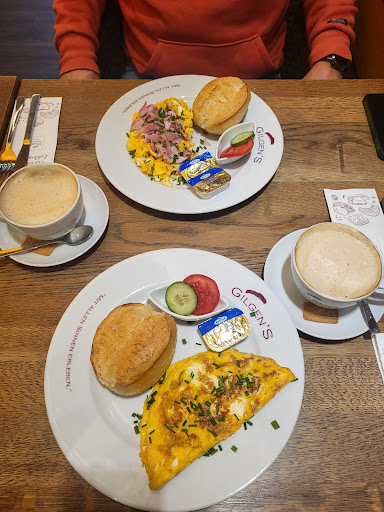 Read moreEigentlich gehe ich sehr gerne dort frühstücken. Ich weiß auch immer schon vorab, dass die Mitarbeiterinnen dort meist mit dem Frühstück etwas überfordert sind. Ich war dort mit einer Freundin zum Frühstück. Sie bestellte das Super-Frühstück, ich das Gilgens-Frühstück. Wir bestellten nacheinander. Man fragte mich sofort, ob ich Zeit hätte, es würde etwas dauert. Insgesamt waren drei Mitarbeiterinnen im Laden und nur vier Gäste mit Frühstück. Ok, dann noch die Laufkundschaft, aber es war wirklich nichts los. Nach ca. 30 Minuten fragte ich dann mal nach, wie lange es noch dauert. Dann sah ich, dass die Herren, die nach uns bestellt haben, ihr Rührei schon hatten. Nachdem wir dann unser Frühstück endlich hatten, mussten wir noch auf die fehlenden Getränke hinweisen. Der frisch gepresste O-Saft war ungenießbar. Es war nur reines Fruchtfleisch. Ich wies die Mitarbeiterin darauf hin, worauf ich zur Antwort bekam, dass sie den Saft nicht gemacht hätte, das war ihre Kollegin. Sorry, aber wer den ungenießbaren Saft gemacht hat, interessiert mich doch nicht. Nur, dass er ungenießbar ist. Die Preise wurde auch hier angehoben und dann möchte ich wenigstens auch gut essen. Oder eben einen Ersatz angeboten bekommen, wenn etwas nicht stimmt.