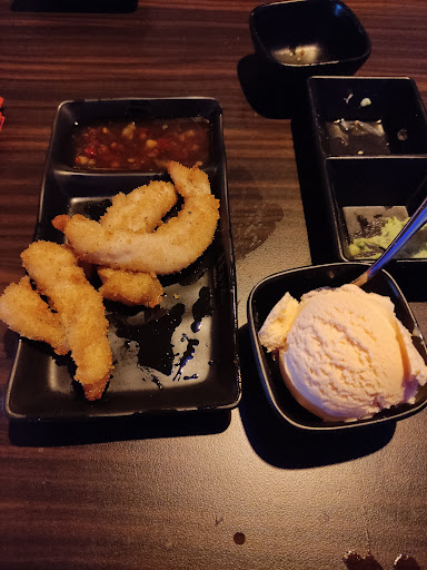 We mainly came because we love Japanese food and weren't expecting much and when we arrived we were surprised at how ugly the outside was. Expecting even less we now we entered and noticed the smell of urine and smoke in the hall, but once inside the restaurant we were very positively surprised, very modern and nice atmosphere. We came early and it was nice and empty (it was about 17:00-17:30) once we sat down at a table we noticed the bench was slightly ripped but not to bad. You order on an iPad and can order 5 things per person per round, there's a 8:00 minute timer between rounds. The food arrived fast and was very good, somethings weren't so good though