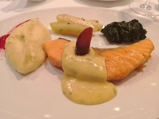 Es sind auch die Details, die ĂŒberzeugen. Uns hat es z.B. sehr gefallen, dass die Beleuchtung gedimmt wurde oder dass der Service grundsĂ€tzlich von der rechten Seite bedient, der Nachtisch von links gereicht wurde. Auch kam der Regaleali nahtlos als der ApĂ©ritif ausgetrunken war. Besonders angenehm war die Tatsache, dass man sich zwischen den GĂ€ngen wirklich Zeit nahm und man den Abend so genieĂen konnte. Da es hier immer voll ist, kann die LautstĂ€rke mitunter hoch sein. Wir kommen daher gerne etwas spĂ€ter und wĂ€hlen wenn möglich einen Tisch an der Peripherie.