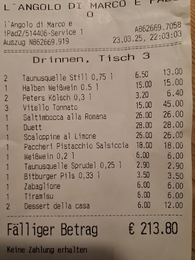 Read moreJa wo soll ich anfangen?! Familie L‘Angelo haben viel von dem was es heute mehr den je braucht - Herzlichkeit, Leidenschaft, Geschmack, Zusammenhalt und stehen mit beiden Füßen auf dem Boden. Der Empfang bei Ankunft zeigt die erste persönliche Note und die Führsoge für das Wohlergehen bei Besuch. Die Leidenschaft sieht man in den Augen von Marco und seiner Frau wenn sie erzählen: von der Trattoria, vom Essen, den Zutaten von Italien, von Familie. Vorne und hinten in der Küche mit Leidenschaft gekocht, das schmeckt man. Teilweise musste ich die Augen schließen und mich voll auf den feinen Geschmack meines Saltimbocca zu konzentrieren. Die Kartoffeln, lecker, erinnerten mich an Gnocci. Der Spinat fein, das Olivenöl heraus zu schmecken war nicht so einfach. Ich traf den Koch im Flur und musste mich für das Essen wirklich bedanken. Ein Genuss. Zum Nachtisch für unsere Kinder eine Pizza Nutella. Kurz war ich etwas skeptisch. Dererste Biss zeigte mir ein neues Italien.