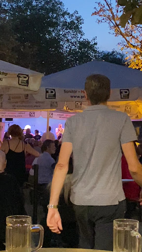 Of course the Biergarten had plenty of outdoor seating with umbrellas. Service unfortunately was very poor, it took 20 minutes to get a server's attention. There was a 30-person group there at the time, so your results may vary.