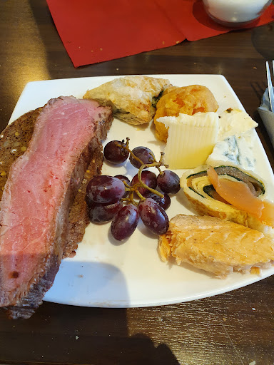 Read moreWir waren zum Brunch dort an einem Sonntag. Es war das zweite Mal und wir haben gedacht wir geben dem Lokal nochmal eine Chance. Am Service gibt es nichts auszusetzen, aber das Buffet war wieder nix besonderes.Die Brötchen schmeckten fade, ich hatte ein Roggenbrötchen, die Kruste schmeckte irgendwie"chemisch". Kann es gar nicht beschreiben. Gegen Aufbacken ist ja nix zu sagen ,aber da gibt es sicher bessere. Körnerbrötchen gab es nur wenige und waren schnell "vergriffen". Die Blätterteigteilchen schmeckten nur nach Blätterteig, von der Brokkoli oder Käsefüllung merkte man nix. Dazu Scheibenwurst und Käse,Marmelade und Nutella. Da kann man nix falsch machen. Das Roastbeef (?), war ziemlich blutig und sah nicht ansprechend aus. Als warmes Gericht hätte ich mir eine Suppe und Geschnetzeltes gewünscht. (Es gab In einer Form gemischtes Gemüse aus dem Ofen (?).) Beim Rührei hätte ich noch gerne etwas Schnittlauch oder so darin gehabt. Da fehlte der Pepp.Frisch gepresster O-Saft wäre auch schön gewesen. Für das Geld hatte ich schon viel abwechslungsreicher und besser gegessen. Alles in allem kein ansprechendes Buffet. Ist aber alles Geschmackssache. (Ich hätte da einige Ideen,die man mit wenig Aufwand umsetzen könnte.) Das Personal ist aber sehr nett, alles war sauber, auch die Toiletten. Kann das Lokal leider nicht weiter empfehlen , obwohl die...