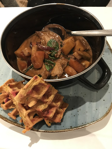 Wir waren zu zweit an einem Samstag Abend gegen halb 9 da. Sehr netter Service, Ambiente eigentlich schön allerdings ziemlich hell beleuchtet durch die Led-Spots an der Decke. Könnte man dimmen, dann wäre es ein bisschen gemütlicher. Es war sehr wenig los, es waren nur drei weitere Tische besetzt die auch schon im Begriff waren zu zahlen so dass wir ab ca. viertel nach 9 die einzigen Gäste waren, was den Service allerdings offenbar angespornt hat noch besser zu sein! Wir entschieden uns für zwei Vorspeisen und zwei Hauptspeisen. Nachdem wir unsere Bestellung aufgegeben haben gab es zunächst einen Gruß aus der Küche, selbstgebackenes Brot mit Dip - sehr lecker! Kurze Zeit später gab es noch einen weiteren Gruß aus der Küche, Couscous mit Rauke und einer Hummus-Creme - überraschend und auch sehr gut! Die beiden Vorspeisen kamen passend (Orangen-Kürbis-Ingwercreme mit frittieren Ziegenkäse Wan Tans, panierte Champignons mit Kartoffel Aioli an Wildkräutersalat) und waren hervorragend!!! Die Hauptspeisen fielen demgegenüber ein bisschen ab (Hausgebeizter Lachs, Pauke Topf), vor allem der Lachs war ein bisschen „langweilig“. Im Paule Topf war für unseren Geschmack ein bisschen zu viel Wurzelgemüse, allerdings waren Sauce und Fleisch auch hier top. Die Kartoffel-Gemüsewaffeln, die als Beilage dabei waren, sind ebenfalls sehr zu empfehlen!