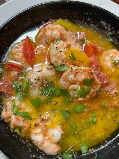 We ordered two glasses of wine and had Sutzukakia and Garides mit olivenol. He gave us a chicken vermicelli soup which we hadn’t ordered, and that literally tasted the best. The shrimps in the butter bath was just exquisite. The mix of butter and herbs was absolutely delicious. And the meatballs, oh my god, I’ve never had anything more delicious than those meatballs.