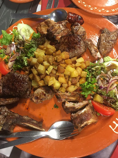 Dass dieses Restaurant überhaupt noch Gäste findet und die Bewertungen im Internet zu positiv sind, ist uns ein echtes Rätsel. Oder wurde bei den Bewertungen nachgeholfen? Preislich ist dieses Restaurant auch nicht empfehlenswert. Bspw. kostet ein Rindfleischspieß mit 3 je 1cm³ großen zähen Fleischstücken mit gleichgroßen Paprika- und Zwiebelstücken 5,90€. Eine dünne 4cm lange flambierte portugiesische Wurst kostet 4,90€. Sowohl die Damen- als auch die Herrentoilette waren offenbar schon länger nicht richtig gereinigt worden. In der Damentoilette tropfte Wasser aus dem kaputten Waschbecken. Die Konstruktion der Überdachung auf der Terrasse rundet das Abenteuer ab. Bauschaum hält die Dachkonstruktion zusammen und hingesteckter Schaumstoff soll verhindern, dass der Wind unter das Dach bläst. Das Holz der gesamten Terrassenüberdachung wurde scheinbar aus Einwegpaletten entnommen.