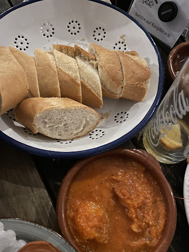 Read moreWir waren zu zweit und hatten reserviert. Die Reservierung hat problemlos geklappt, jedoch wurden wir am Empfang erstmal 5min stehen gelassen, da die Kellner sich unterhielten und nicht auf ihre Gäste achteten. Ich habe sie dann angesprochen, als ich nicht mehr warten wollte, woraufhin ich freundlich begrüßt wurde und sich entschuldigt wurde. Wir haben auch 2 Bier, die wir bestellt hatten, als Entschädigung für das Warten bekommen. Das Ambiente ist zufriedenstellend. Zu Essen hatten wir Tapas bestellt: Die Oliven waren gut, sind aber auch einfach eingelegte Oliven, da kann man nicht viel falsch machen. Wir hatten auch Pan con Tomate bestellt, welches sich als Bruschetta entpuppte und daher schon eine leichte Enttäuschung bei uns aufkam. Die Patatas Arrugadas waren gut, jedoch die Mojo Rojo, die dazu geliefert wurde war eher Ajvar und nicht typisch spanische Mojo Rojo. Das Hähnchen war auch kein typisches Pollo al ajillo, welches eigtl. als zartes Hähnchen in einer Knoblauchsauce liegt und mit Petersilie verfeinert wird. Hier wurde ein gesamtes Hühnchenbein serviert auf dem etwas Knoblauch verteilt wurde, die Petersilie hat komplett gefehlt. Die Gambas al ajillo dagegen waren sehr lecker und auch typisch spanisch angerichtet. Wir hatten auch Boquerones en vinagre bestellt, welche vergessen wurden (passiert mal, ist nicht so schlimm, wurden auf Nachfrage gebracht) jedoch wurden über die Boquerones Zwiebelwürfel gestreut, welche dort nichts zu suchen haben. Die Pimientos de Padron waren lecker, mir hätte es nur etwas mehr körniges Salz sein können, aber Salzmühlen standen auch am Tisch, daher kein Problem. Die Patatas Bravas waren okay, es hat leider Salz gefehlt und die Aioli hat eher nach Mayonnaise geschmeckt als nach Aioli (es hat Knoblauch gefehlt und typisch spanisch wäre zu den Patatas auch eine scharfe Aioli gewesen). Die Kritik hatten wir auch schon einem Kellner gegenüber geäußert, welcher sich dafür mit 2 hausgemachten Lakritzschnäpsen entschuldigt hat. Der eigtl Kellner, der uns den Abend über bedient hat, war sehr freundlich, an ihm ist nichts...
