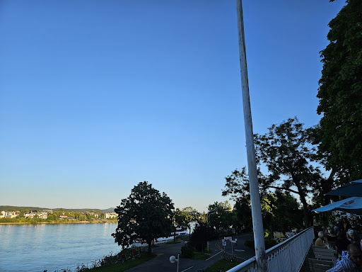 Das blonde Glück wird hier in bester Manier direkt aus dem Zapfhan in die vorgekühlten Humpen eingelassen, um es sich anschließend mit seinen Kumpanen im angenehmen Schatten der Bäume und (mit etwas Glück) einem Platz mit Rheinblick einzuverleiben. Wer sich nach der Bestellung des Essens nicht scheut an der Ausgabe des Futtertrogs, von der Herrin des Hauses mit unsanften Worten herbei zitieren zu lassen, um das passable Gericht entgegen zu nehmen, wird auch von der Küche des Hauses nicht enttäuscht werden. Die Preise sind für die Location, den Service und im allgemeinen für Bonner Verhältniss mehr als fair. Ein guter Ort um beim vorbeikommen einzukehren oder gezielt in kleiner bis mittelgroßer Runde zusammen zu kommen. Rundum ein guter Ort um sich bei lauen Sommerabenden im Beisein seiner besten Trinkgenossen gesittet den Schaltkasten neu zu verdrahten.