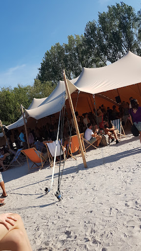 Read moreGenerell ein sehr schöner Ort zum Chillen. Die Lautstärke der Musik genau so, dass man sich auch noch vernünftig unterhalten kann. Die Getränkepreise finde ich persönlich sehr teuer für einen Cocktail (9€!!!) In jeder Cocktailbar gibt's die günstieger. Was gar nicht geht war dieser Toilettenwagen. Die Erfahrung hat meine Punktebewertung leider maßgeblich mit beeinflusst. Wenn man die Spülung selbst pumpen muss und dabei "gelbes Wasser" zum Vorschein kommt und es augenblicklich nach Urin stinkt geht das leider überhaupt nicht! Zum Glück funktionierte das Wasser am Waschbecken, ansonsten hätte ich mich beim Verlassen der Location nur noch geschüttelt. Verbesserungswürdig - dann komm...