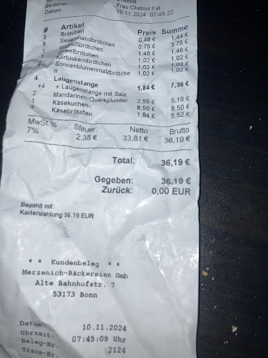 Read moreDie Brötchen schmecken im Großen und Ganzen gut, wenn man sie zeitnah nach dem Kauf verzehrt und auch ein bisschen Glück hat und sie nicht allzu lange in der Auslage gelegen haben. Das gilt sogar noch etwas mehr für die Croissants. Richtig gut "alt" werden beide nicht so und sind nach ein paar Stunden schon trocken.