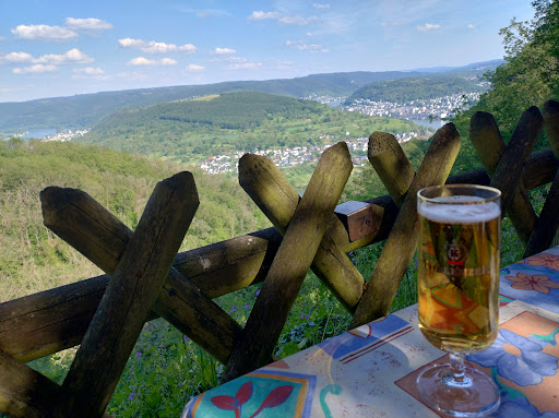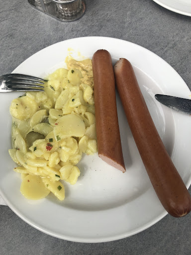 Read moreDie sehr schöne Aussicht und der gemütliche, etwas in die Jahre gekommene Biergarten, ist leider alles, was man als positiv bezeichnen kann. Bedient wird man nur mäßig freundlich. Wir kamen zu zweit gegen 16:15 Uhr. Das erstes verkündete man uns, dass um 17:00 Uhr geschlossen wird. Das angepriesene "Tagesmenu" Bockwürstchen mit Brot für unverschämte 8,50€ gab es nicht, da die Brotschneidemaschine schon desinfiziert sei (haben die kein Messer?!). Der erste Impuls war, einfach wieder zu gehen, was wir im Nachhinein auch besser getan hätten. Aufgrund der schönen Aussicht blieben wir und bestellten Bockwürstchen mit Kartoffelsalat für noch unverschämtere 11,50€. Der Kartoffelsalat kam in geringstmöglicher Meng aus dem Eimer auf den Teller, dazu 10g Senf in völlig unnötiger Einwegverpackung. Mit der anschließend mit 50 Cent in Rechnung gestellten weiteren 10g-Portion Senf schoss man in Sachen Wucher hier den Vogel ab. Offensichtlich legte man auch keinen großen Wert auf Sauberkeit. Ein Getränk (Flaschenbier) kam im Glas verunreinigt durch eine milchige undefinierbare Substanz auf den Tisch und wurde erst nach überflüssiger Diskussion umgetauscht.