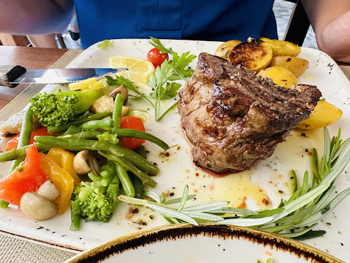 Read moreDas Essen ist entsprechend der Möglichkeiten italienisch/ mediterran. Ich liebe Pizza, ich mag Pizza auch in verschiedenen Variationen. Hier serviert mit einem sehr dünnen Teig, groß, aromatisch, dünn belegt. Nicht unbedingt für den großen Hunger. Wer mehr erwartet und satt werden will, muss etwas dazu bestellen. Wie in Italien eben. Einen Vorspeisenteller vorneweg, einen Salat dazu, eine Portion Spaghetti hinterher oder eine schöne Portion Nachtisch als Nachspeise. Bei den aufgerufenen Preisen und der gelieferten Qualität auf jeden Fall empfehlenswert.