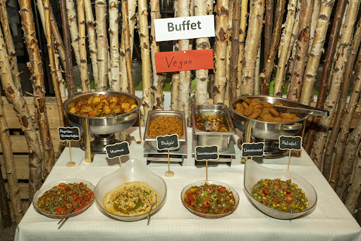 Wir hatten das Grillbuffet bestellt und extra an die Veganer gedacht. Das Grillbuffet bestand aus mehreren Sorten Fleisch, Salaten, Dips, Brot und Beilagen. Aber auch für die Veganer wurde viel geboten.