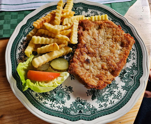 Wer Schnitzel mit Pommes mag, kann hier zufrieden sein. Wer lieber Bratkartoffeln zum Schnitzel möchte, bekommt 'ne schnippische Antwort. "... und karierte Maiglöckchen gibt's auch nicht". Das kann man so machen, wenn man seine Stammgäste hat und ausgebucht ist. Hier sieht es aber eher so aus, als ob der einzige Stammgast "Schnittchen mit Ei und noch' n Körnchen" bestellt. Also Schnittchen gibt's auch. Wer sich traut zu fragen, kriegt bestimmt auch raus ob es Schnittchen mit Schinken oder Leberwurst gibt. Auf einer Karte kann man leider nichts nachschauen. Die gibt's nämlich auch nicht. Naja. Eine Anekdote mehr aus...
