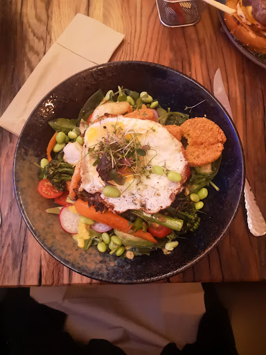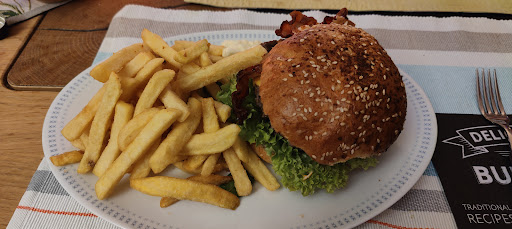 Bestellt wurden von mir und Freunden 4 Burger und Ofenkartoffel mit Champignons. Optisch sieht das Essen sehr ansprechend aus und die Portionen sind auch verhältnismäßig groß. Leider hat der Chefkoch das Konzept 'Burger' wohl nicht verstanden. Es dominiert leider nur der Geschmack vom überwürzten Fleisch und angebrannten Brötchen. Schade. Mit weniger gutem Essen satt werden kann man auch günstiger. Die 15€ aufwärts definitiv nicht wert. Die Ofenkartoffel mit Pilzen und Sauerrahm war lecker, auch wenn man auf dem Beilagen Salat nur auf Zuckerkörnern gekaut hat. Auch hier ist der Preis von 13€ nur gerechtfertigt, wenn man zeigen möchte wie viel Geld man für sehr einfaches Essen ausgeben kann.