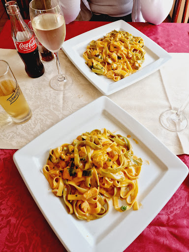 Gestern waren wir im Ristorante Bellini. Klingt erst einmal sehr italienisch... Spontan haben wir um 19 Uhr für 20:00 Uhr einen Tisch reserviert. Kein Problem - war ja alles frei. Wir wurden an den Tisch gebracht und bekamen auch schon sofort eine Karte hingelegt. Unser Aperitif wurde sofort aufgenommen. Wir bestellten jeweils einen Hugo. Die Karte war unsauber Handschriftlich geschrieben, mehrfach schief kopiert und einlaminiert und rückwärts von rechts mit einem Band gebunden. Also de Anfang war quasi die letzte Seite von einem Buch. Die einlaminierten Seiten sind sicher zur Coronazeiten praktisch zu desinfizieren aber so wie meine Karte klebte und auch sichtbar Rückstände auf der Karte klebte, glaube ich nicht daran dass auch nur einmal die Karte einen Lappen gesehen hat. Die Auswahl auf der Karte sei wegen Corona eingeschränkt, ich muss sagen ich fand die Karte dennoch sehr groß und bietet wirklich für fast jeden was an.. In der Karte steht, dass wenn man einen Wunsch hat bezgl eines fehlendes Gerichtes man doch bitte dies ansprechen sollte und diese gucken ob die Küche den Wunsch doch erfüllen könnte. - Tolle Sache! Als die Dame uns die Hugos brachte nahm sie das Essen auf. Wir bestellten beide ein Nudelgericht.. Einmal mit gambas und einmal mit Hähnchen Spinat und Pernodsauce. Wir fragten ob Bruscetta als Vorspeise möglich wäre da diese nicht auf der Karte stehen würde. Die Dame sagte uns sie würde das in der Küche erfragen. Meine Freundin bestellten dann noch eine kleine Flasche Wasser weil der Hugo viel zu süß war. Zudem empfand den ich ihn auch sehr warm. Durch die Eiswürfel und das bestellte Wasser wurde der Hugo dann auch später was Kühler.. Es dauerte gar nicht so lange und wir bekamen unsere Nudelgerichte. Eine Antwort ob Bruscetta möglich wäre oder nicht haben wir nie erhalten.. Und eine Alternative zu Bruscetta als Vorspeise konnten wir auch nicht wählen weil wir ja nun den Hauptgang hatten. Übrigens eine Nachspeise war auf der Karte nicht zu finden. Die Teller waren sehr groß und sehr sehr voll und ich für meinen Fall fand es war viel zu viel Sauce. Nach der Hälfte konnte ich keinen bissen mehr tätigen weil mir der Pernod in der Sauce zu intensiv war. Einfach alles schmeckte nur nach Pernod. Egal ob ich ein Tortellini aß oder ein Stück Hähnchen. Mir war es einfach zu gut gemeint mit dem Pernod. Ansich war es aber keine schlechte Leistung vom Koch sondern wie bereits gesagt einfach nur zu gut gemeint mit dem Pernod. Als wir beide nicht mehr weiter essen konnten kam die Dame auch schon nahm unsere Teller mit und fragte ob wir das essen einpacken lassen wollten. Wir verneinten. Das war dann auch das letzte Mal das wir die Dame gesehen haben. Keine Frage ob wir evtl später noch ein dessert wollten.. Oder vllt nach dem Aperif noch ein weiteres Getränk.. Nichts.. Wir haben uns dann noch sehr lange unterhalten bis dann quasi kurz vor Ladenschluss eine jüngere Dame kam und fragte ob wir noch was trinken wollten. Meine antwort war leider "Jetzt auch nicht mehr." ziemlich genervt ging die Dame wieder. Wir sind dann nach kurzer Zeit aufgestanden um die Dame zu suchen damit wir zahlen konnten. Vorne im Eingangsbereich saß dann die Dame die uns am Anfang bediente und starrte auf dem Handy und guckte auch nicht einmal hoch. Hinter dem Tresen stand die jüngere Dame, ebenfalls mit ihrem Handy an der Wand angelegt am Skypen. Sorry dafür dass wir euch gestört haben. Wir wurden dann ohne Masken und ohne Abstand zu uns abkassiert. Meine Freundin hat 19€ bezahlt und ich musste 13€ zahlen. So wenig habe ich noch nie bezahlt wenn ich essen gehe. Und das lag nicht an den Spot günstigen Preisen sondern einfach weil man nicht bedient wurde. Zuhause habe ich dann erstmal was getrunken und einen Joghurt gegessen. Zudem ist zu erwähnen, dass ich in einem Restaurant passende Musik angebracht finde. Hier gab es keine klassische italienische Musik sondern laute Reggatonmusik. Der (einzige) Nachbartisch merkte einmal an wer denn hier die Musikauswahl trifft. Das wurde nur belächelt von der...