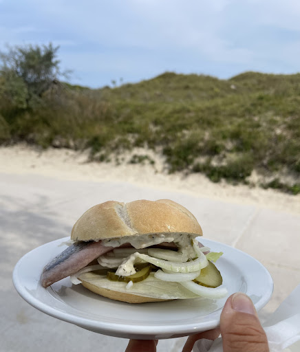 Read moreAusgediente Windsurfboards 🏄🏻 🌊und andere maritime ⛵⚓🏝️Accessoires sorgen in der improvisiert wirkenden (aber wohl durchdachten) Bude für eine sehr chillige Atmosphäre. Es gibt sowohl in der Bude selbst Sitzplätze, als auch im großen Aussenbereich (hier findet Ihr sowohl Tische mit Sonnenschirmen, einen chilligen Loungebereich sowie Plätze in der Sonne ☀️). Für Kids gibt es, neben dem reichlich vorhandenen Sand, ein tolles, relativ neues und sehr sicheres Piratenschiff zum spielen). Getränke: Unsere Empfehlung ist der Sanddorn-Spritz (leckerster auf der Insel🏝️). Eine sehr gute Auswahl an Bieren und Softdrinks ist auf der Karte. Essen: sehr gute Portionsgrößen und leckere Gerichte: Nordsee-Kartoffeln m. Nordseekrabben und Kräuterquark, Kartoffelpuffer mit Heringsstip/mit Nordseekrabben und Mohnkuchen sowie Käsekuchen haben wir gegessen und sehr genossen. Fazit: chillige Location, sehr gutes Essen, äußerst freundliche Mitarbeiter und ein angenehmes Publikum (alle...