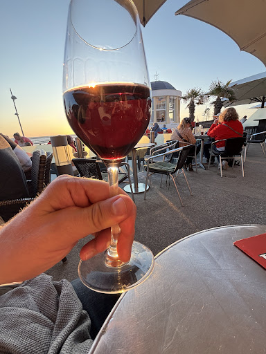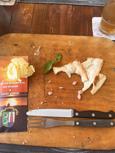 Read moreIch war heute in dem Restaurant und bin sprachlos. Das Einzige, was für das Restaurant spricht, ist die Lage, da man dort entspannt den Sonnenuntergang genießen kann. Das kann man aber auch bei den Restaurants nebenan, die ich deutlich mehr empfehlen würde. Das Essen dort ist wirklich nicht der Renner, um nicht zu sagen sehr miserabel. Auf dem Flammkuchen, der alles andere als wie auf dem Bild aussah, war ein bisschen Creme Fraiche auf dünnem, trockenen Teig. Die Schinkenwürfel waren nicht genießbar (ziemlich roh und qualitativ sehr minderwertig) und der Flammkuchen war von der Unterseite größtenteils verbrannt. Ich habe einen neuen bestellt und recht zeitnah bekommen (da sonst fast keine Kundschaft dort war - verständlich -). Für so einen Flammkuchen 12,50€ zu bezahlen ist zudem auch noch die Höhe - Preis/Leistung auf jeden Fall 1/5😕. Die Getränke waren recht teuer und zur Hälfte mit Eiswürfeln gefüllt. Als wäre das nicht genug, schmeckte das Getränk sehr merkwürdig (als wäre noch Spülmittel im Glas gewesen o. ä.), war also ebenfalls nicht genießbar. Das Personal war mäßig engagiert und sprach teilweise nur wenig bis gar kein Deutsch. Falls sie das Bedürfnis haben, sich nach dem Essen aufgrund von akuten Bauchschmerzen/Übelkeit oder ähnlichen Beschwerden auf der Toilette zu übergeben, empfehle ich ihnen die des Nachbarrestaurants, da die Toiletten in diesem Lokal leider nur einmal jährlich gereinigt werden und es dementsprechend auch dort aussieht bzw. riecht. Zusammenfassend kann ich sagen, dass ich mir für Magenbeschwerden und Übelkeit auch ein halbes Kilo rohen Fisch reinhauen kann und dabei 38€ (Grotesk für dieses Essen) und wertvolle Zeit sparen kann. Ich hoffe, ich konnte Ihnen dieses Leid mit dieser Rezension...