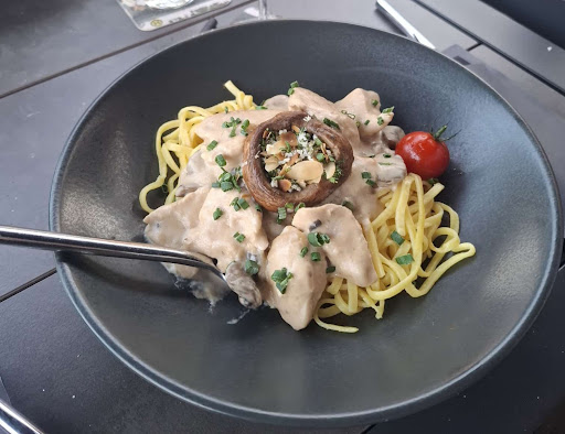 Read moreThe view is definitely worth it at this charming riverside restaurant. We tried the veggie burgers, Flammkuchen, and Sellerieschnitzel, all decent vegetarian options. Food 8/10. A little on the pricier side, but quite reasonable. Service quite alright. If you are biking along the Rhine, there will be a flight of about 30 steps to climb to get to the restaurant. Ample car parking available right outside...