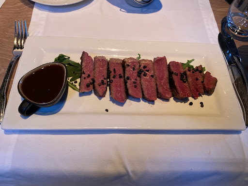 Auch die Hauptspeise war handwerklich gut gemacht und schmeckte toll (ein Rumpsteak medium-rare), war allerdings nichts Besonderes. Bitte nicht falsch verstehen - man kann hier gut essen, das "gewisse Etwas" fehlt aber.