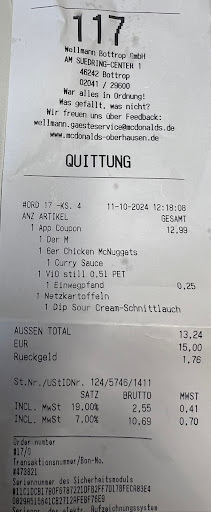 Ich und meine Freundin waren gestern den 11.11.2017 nach Einen lustigen Abend hungrig im drive in gefahren worauf wir erst mal mindestens 15 Minuten in der warte Schlange standen im halb Kreis vor uns War ein Taxi worauf die Zeituhr einfach weiter lief im stand. Bei der Bestellungsaufnahme War der Herr der uns bediente gegen halb 2 sehr freundlich und ich fragte ihm nach das Spielzeug im happy meal worauf er antwortete das es das nicht mehr gebe was ich wollte aber es Ersatz Spielzeug gebe was ich alternativ wählen könnte ich War einverstanden bin zum 1. Fenster gefahren um zu bezahlen worauf wir wieder mindestens 5 min standen. Dann am 2. Schalter eine Frau sie gab mir die Bestellung an worauf ich kurz Stande um meine Bestellung zu Checken. Dann öffnete ich den Inhalt worin sich nur in den happy meal einen Hamburger und eine Pommes befanden ! Ich sprach die Mitarbeiterin höflich an das ich weder eine obstüte noch Spielzeug habe sie verdrehte die augen machte mich ganz blöde an und sagte mir in einen abfälligen Ton das ich das am 1. Fenster schon hätte aussuchen müssen woher soll ich das wissen? Zum anderen hörte sie mir nicht richtig zu ...ich sagte es fehlt noch dir Obst Tüte da drehte sie sich um und reichte mir ein Kinder Buch und ein minnion Rüber worauf ich mich für das minnion entschied. Ich sagte nochmals es fehle noch die obstüte worauf sie meinte mein gott das haben sie auch nicht !" NEIN hatte ich nicht ... sie gab mir die Tüte ich fuhr weiter abgenervt bis meine Freundin meinte und wo ist das trinken ??? Das hatte ich selber schon völlig vergessen bin dann nicht mehr zurück ... im großen und ganzen fehlten bei der Bestellung 3 Dinge .. das Spielzeug die obstüte und das trinken ich bin richtig sauer über solch ein unkompetentes verhalten noch dazu diese Wartezeit ich War das letzte mal bei...